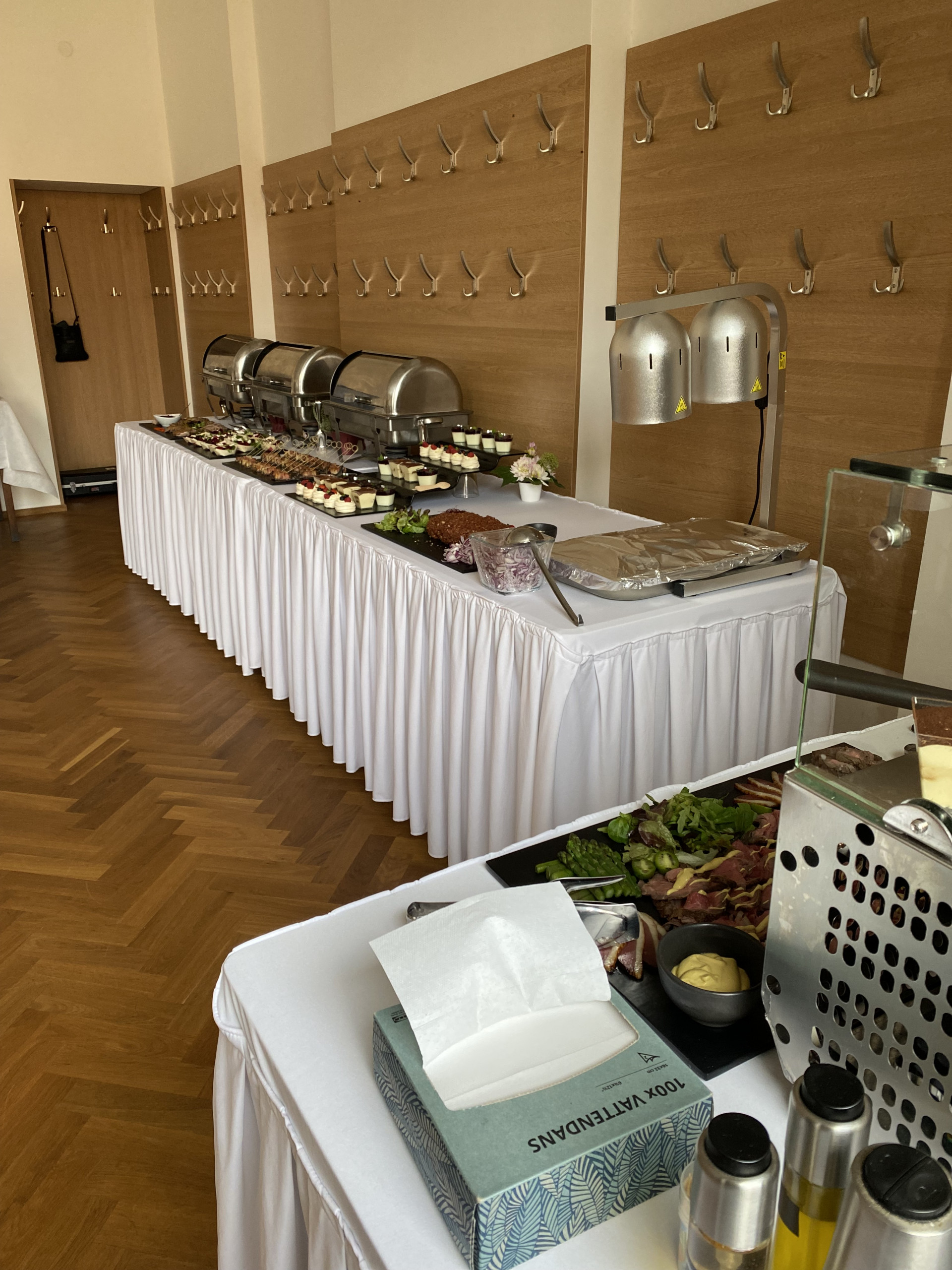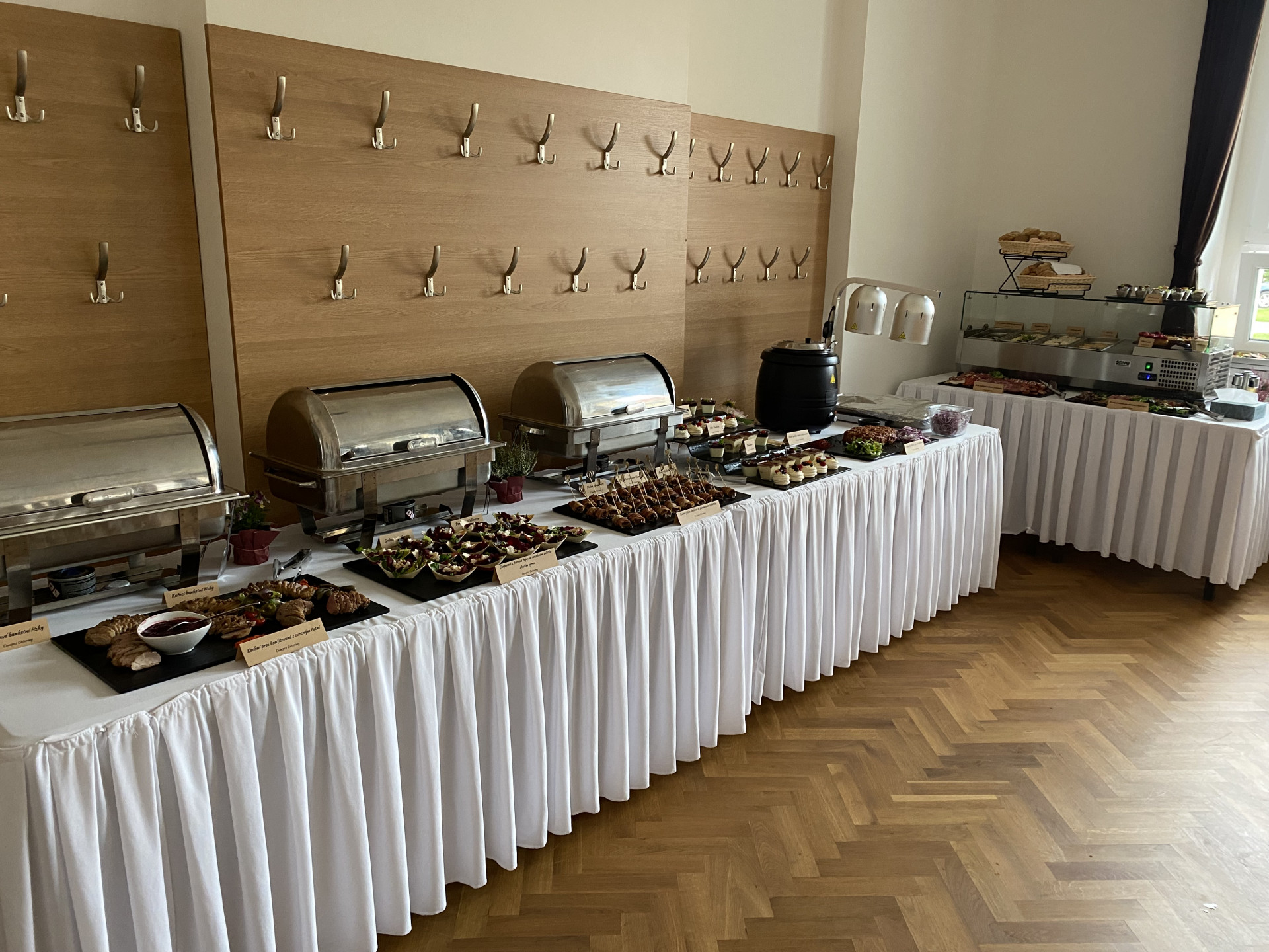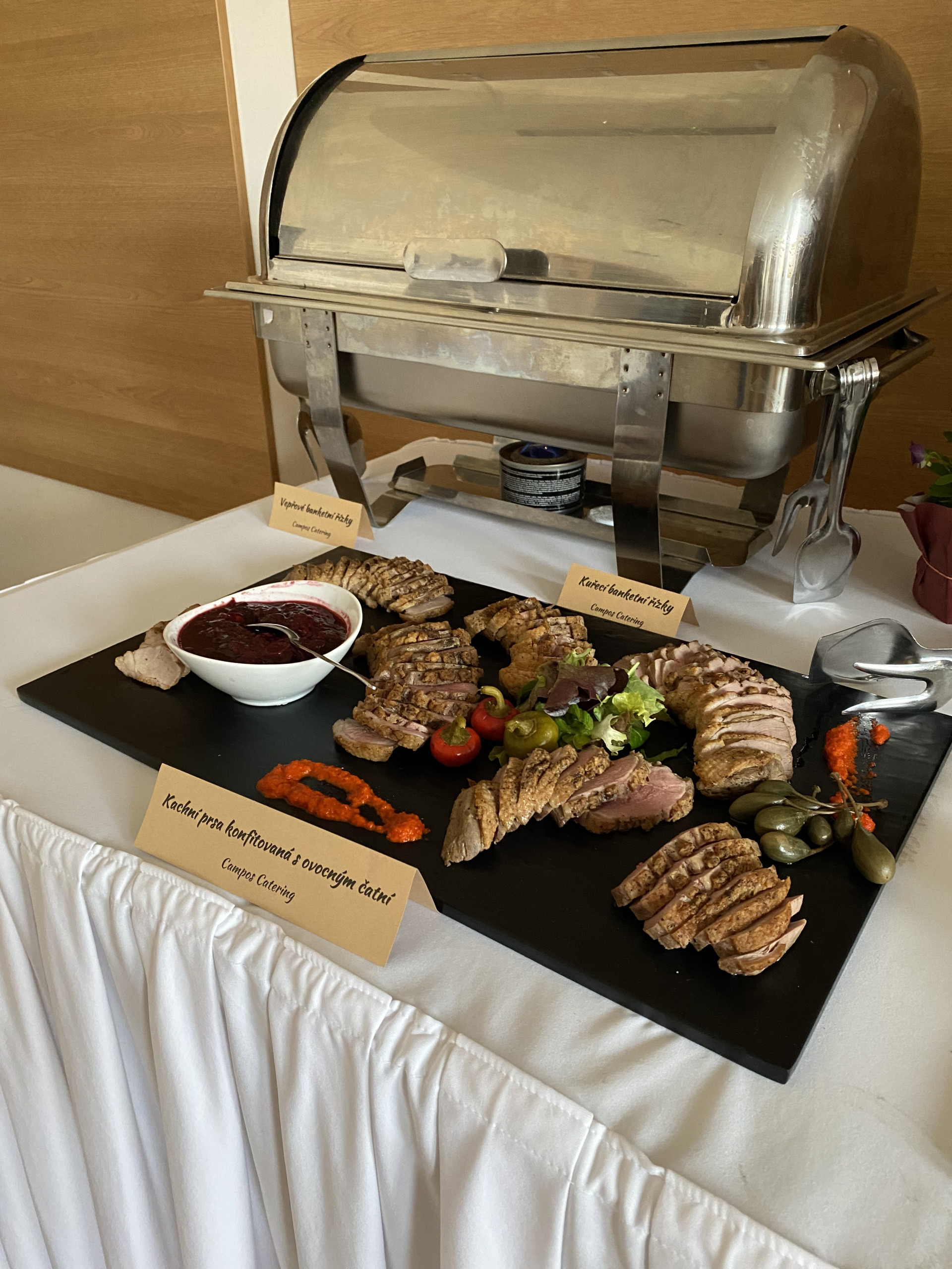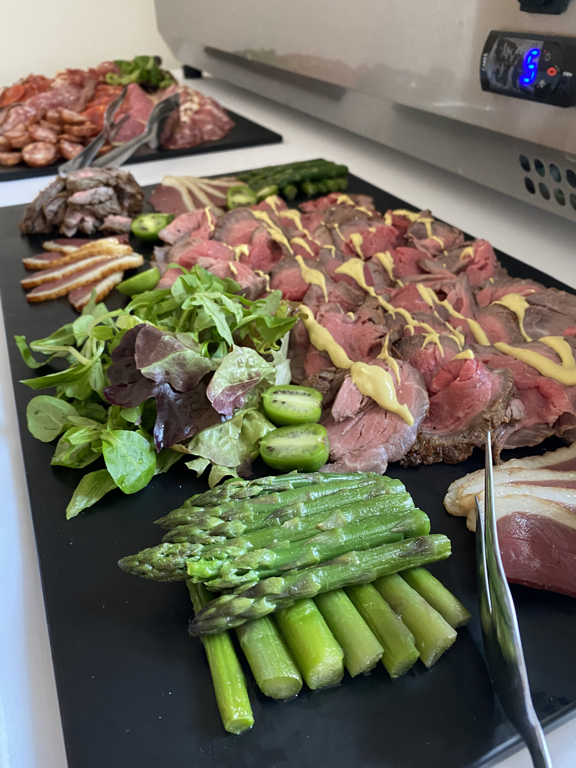 Na narozeninové oslavě v Bohatých Málkovicích jsme podávali různé druhy pokrmů. Začali jsme s lotusovým a malinovým cheesecakem, kachním paté a kuřecími játry obalenými ve slaninovém kabátku a skončili s carpaccia z červené řepy na rukolovém salátku s kozím sýrem a rostbeefem s máslovým chřestem a hořčičným dipem.