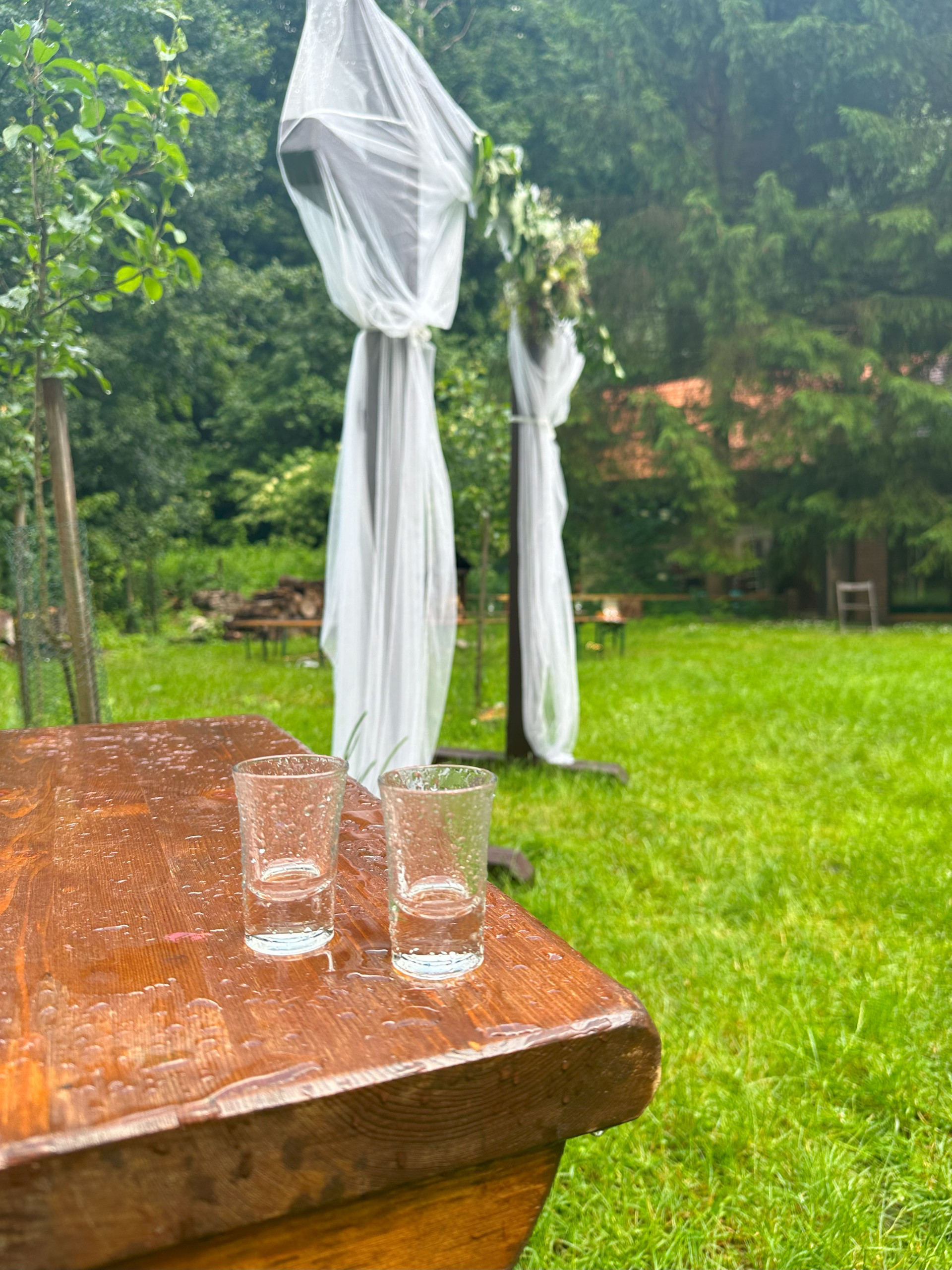Celý den bylo sluníčkově, až na jeden desetiminutový úsek v odpoledních hodinách. A shodnou oklností to bylo právě 10 minut, kdy jsme přenášeli večerní raut do zahradního party stanu. Vy byste to však nepoznali, jídlo jsme dokázali dokonale skrýt. A to svými těly. "Haló, nemá tu někdo ručník?" Podívejte se na fotografie šikovné Zory Vláčilové.