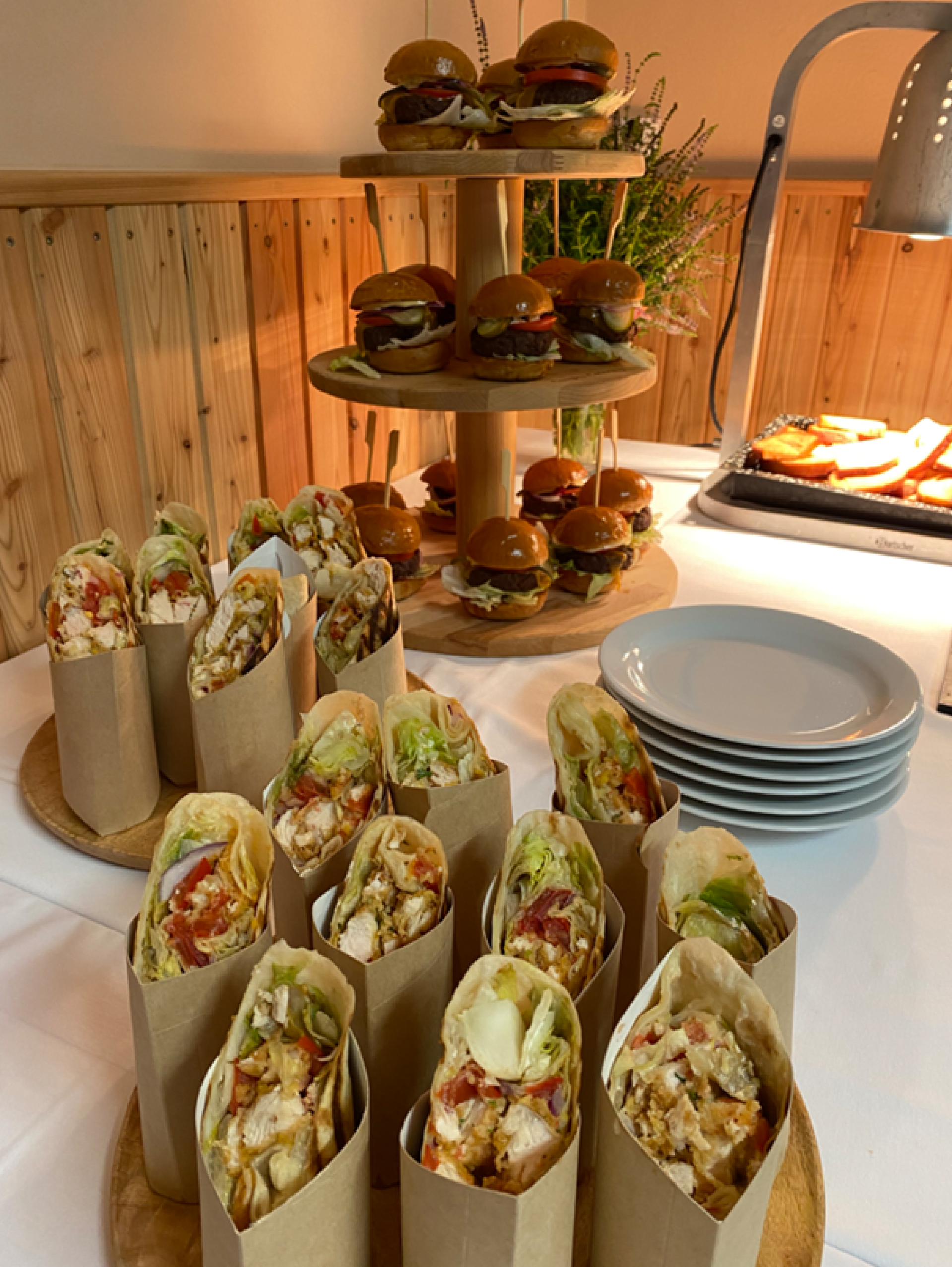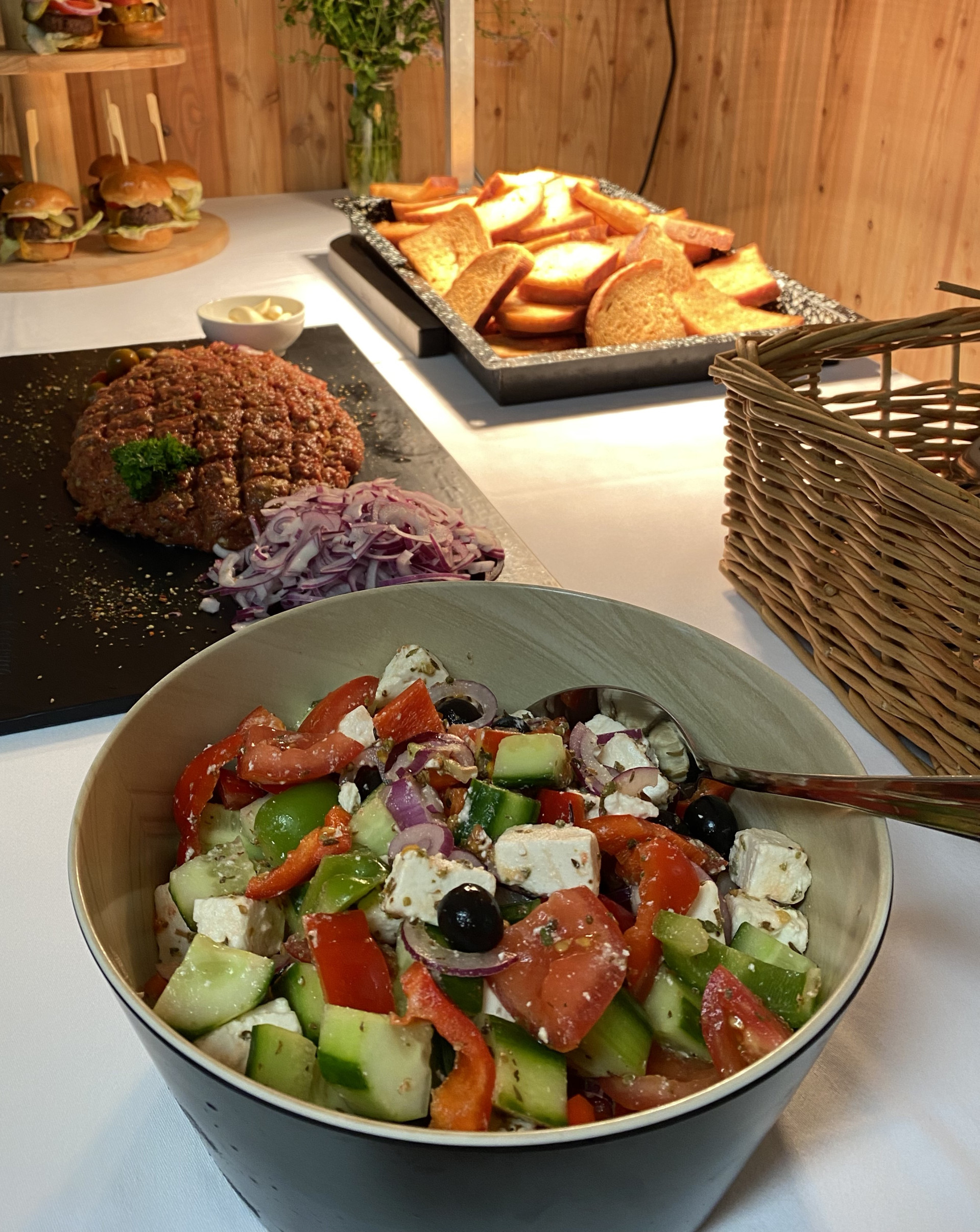 Mladí novomanželé byli na jejich svatební den perfektně připraveni. Celá svatba probíhala podle prčlivého harmonogramu. Po bohatém rautu se odehrálo i několik kreativních her, což velice oživilo celý večer. Podávali jsme dobroty jako ...