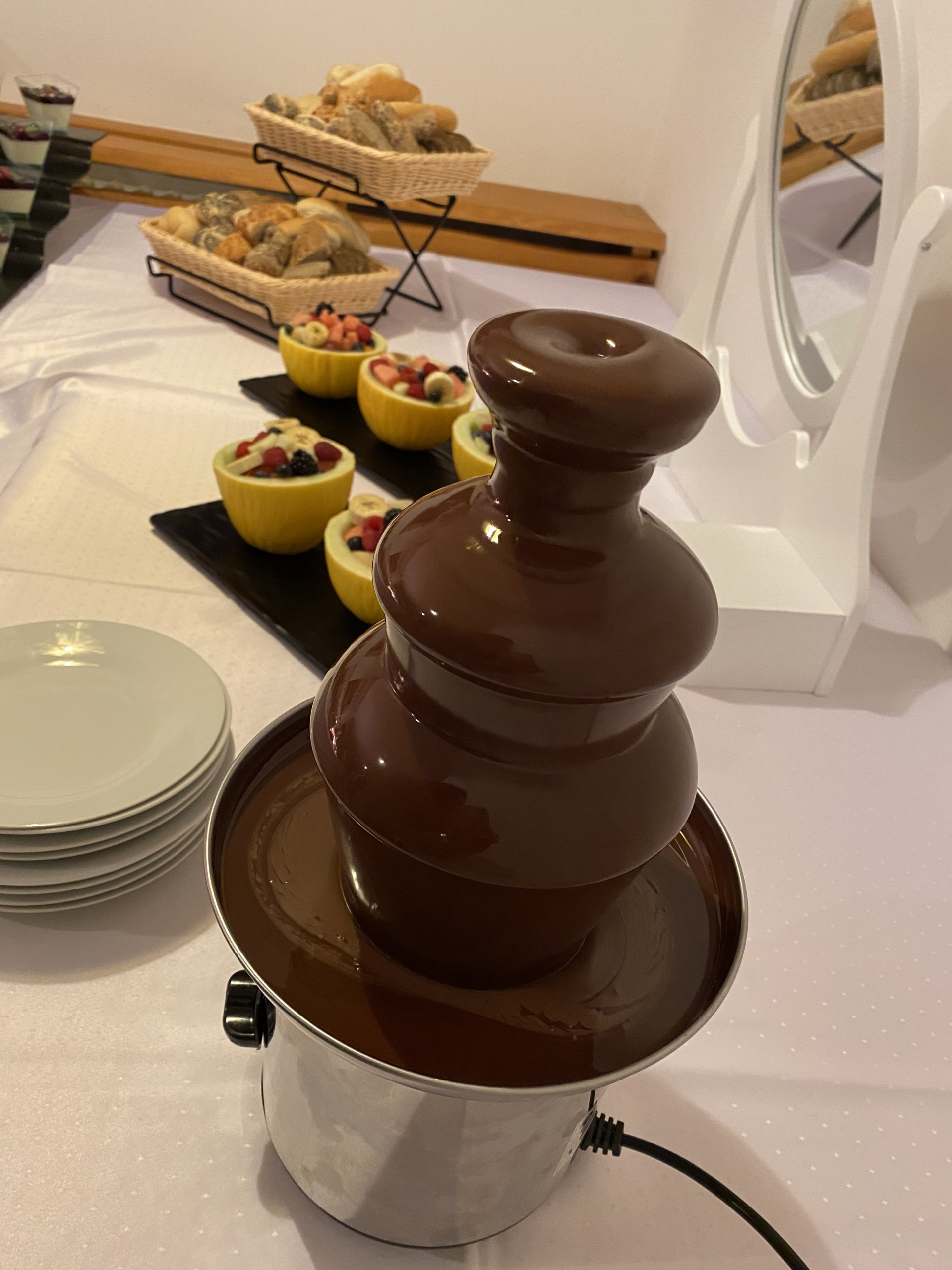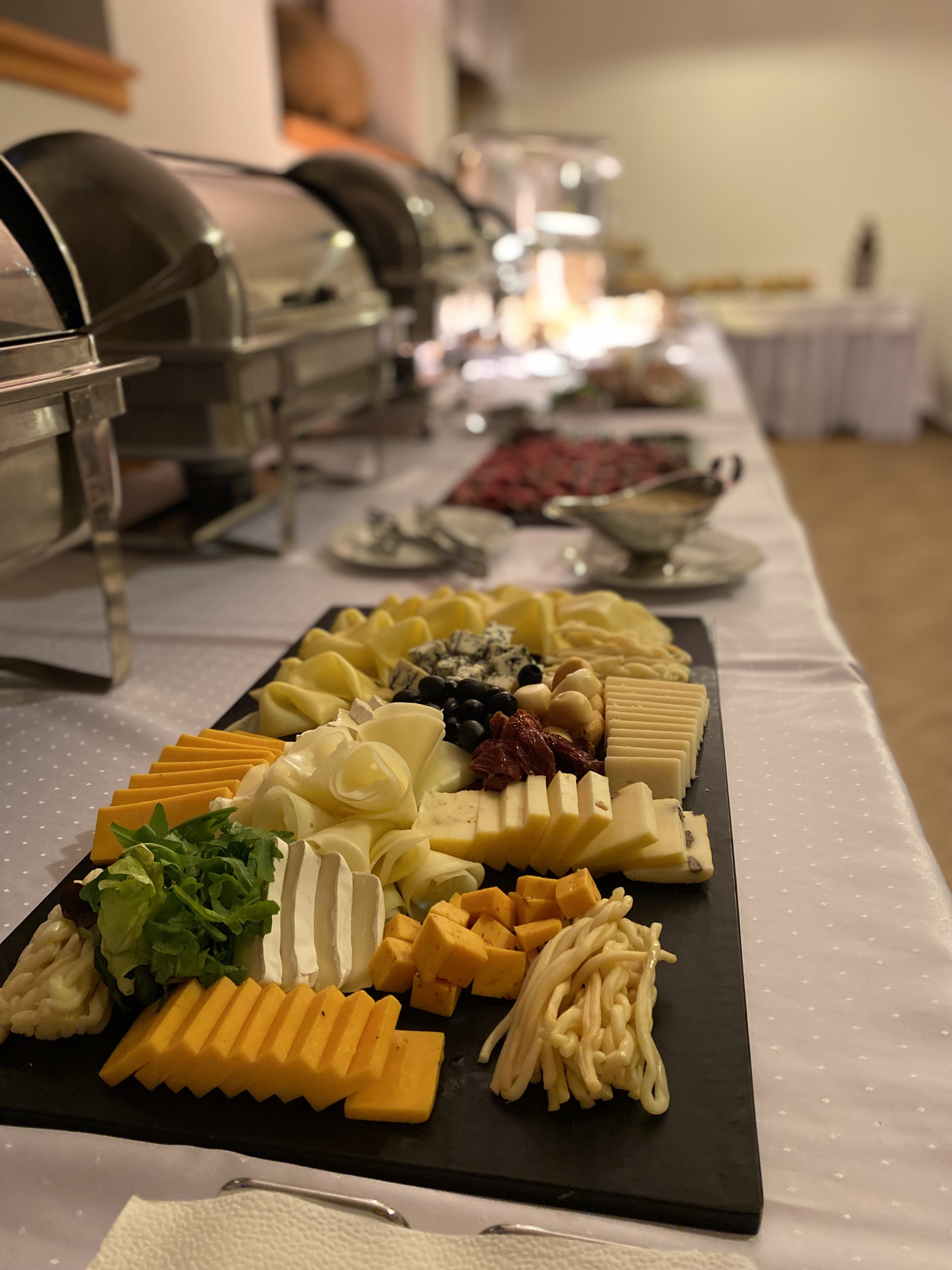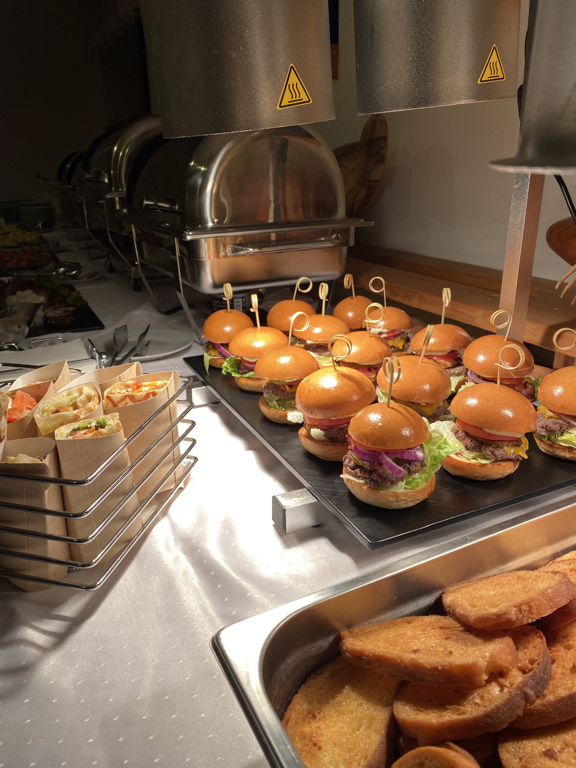 Servírujeme další svatbu! Jako na správné svatební hostině nechyběl předkrm v podobě kachní paštiky a hovězí svíčková s knedlíkem jako hlavní chod. Horká čokoláda tekla doslova proudem v naší čokoládové fontáně a pro milovníky slaného byly přichystány miniburgery a tortilly.