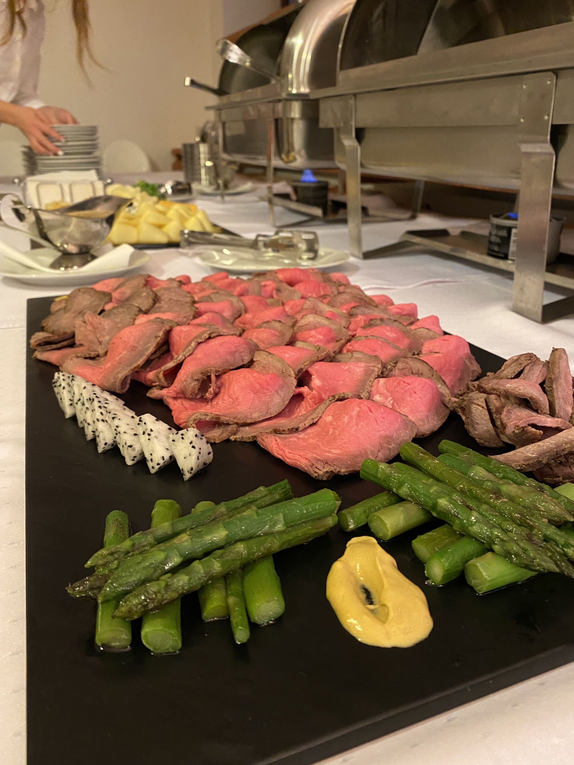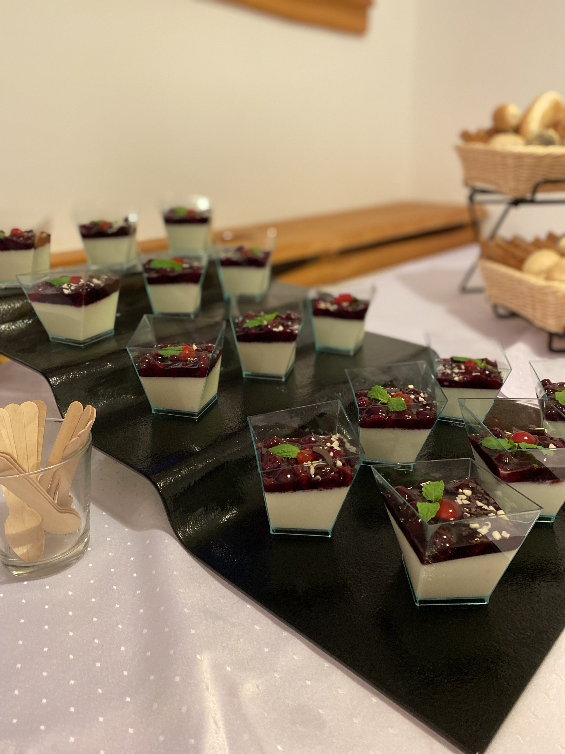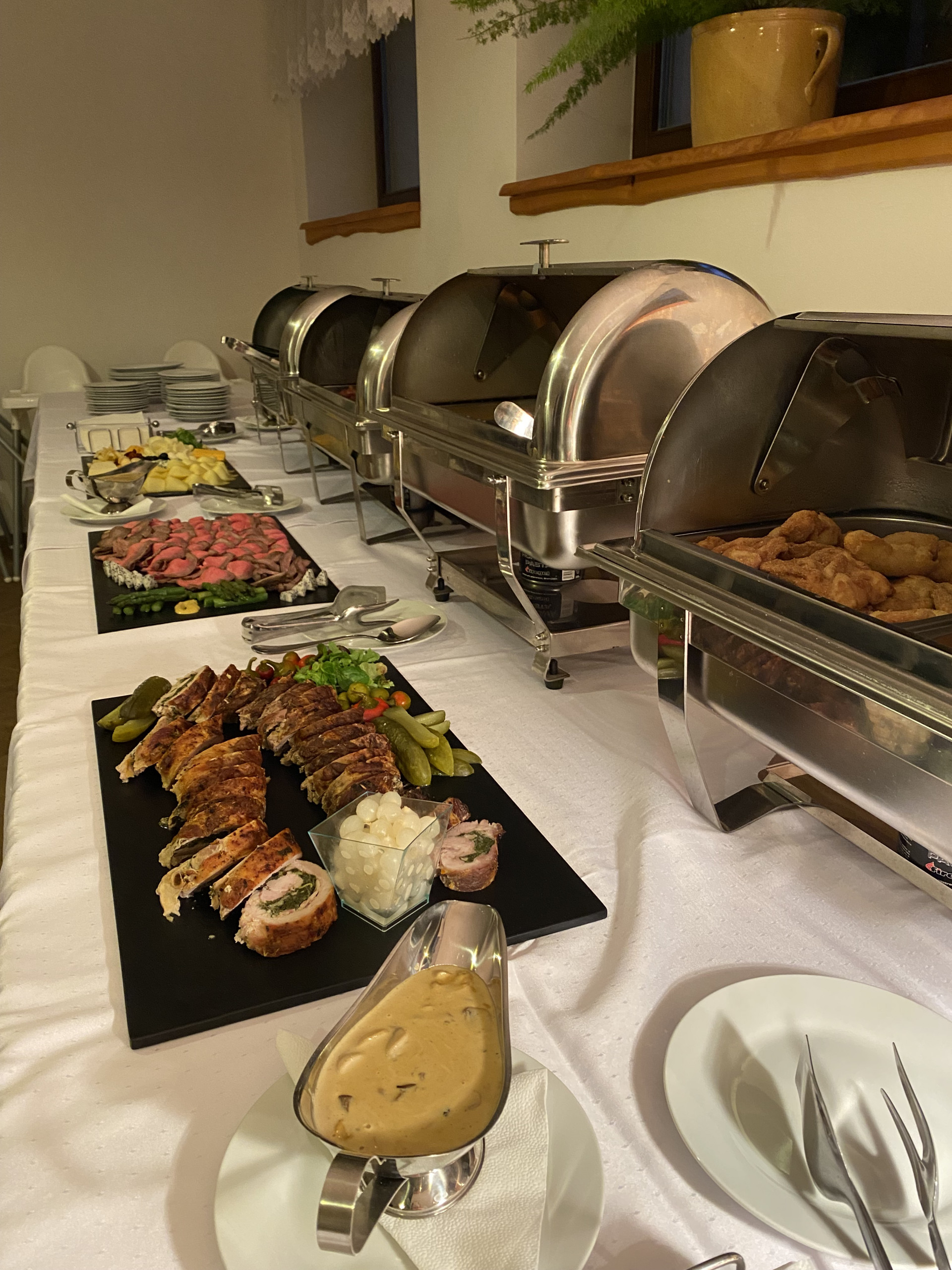 Servírujeme další svatbu! Jako na správné svatební hostině nechyběl předkrm v podobě kachní paštiky a hovězí svíčková s knedlíkem jako hlavní chod. Horká čokoláda tekla doslova proudem v naší čokoládové fontáně a pro milovníky slaného byly přichystány miniburgery a tortilly.